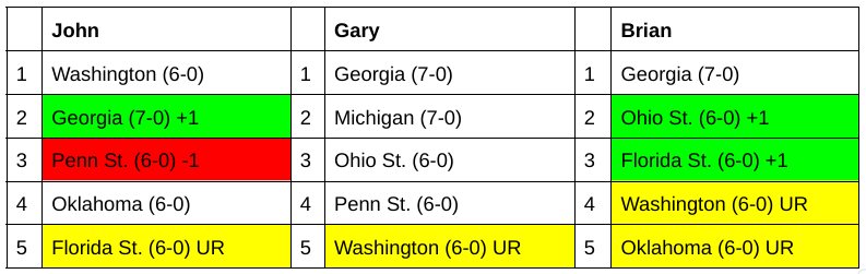 AP Top 5: 1. Georgia; 2. Michigan; 3. Ohio State; 4. Florida State; 5. Washington.