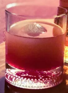 Fill shaker with ice. Combine bourbon, triple sec, pomegranate and lemon juice. Shake and strain into glass with large ice cube. Top with a few drops of grenadine.