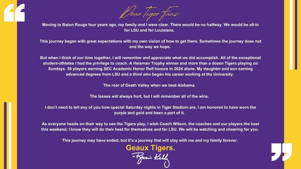 LSU Dumpster Fire: As if the LSU job couldn’t get less appealing, Brian Kelly has to sue the school for his buyout.