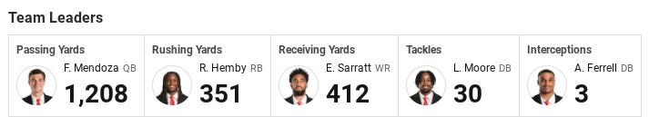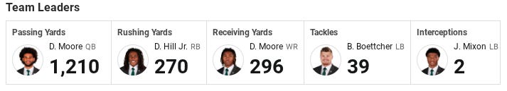 These two teams are about as evenly matched on paper as any two teams could be, making the choice of this week’s winner a toss up. Don’t beleive us, check out just some of the stat leaders from each team below: